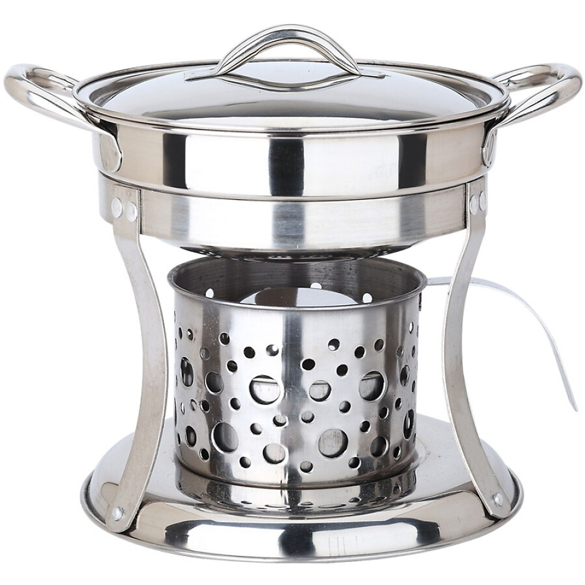 Bộ Nồi Lẩu Inox Bếp Cồn vật liệu thép không gỉ, giúp chống ăn mòn, dễ lau chùi BC-304